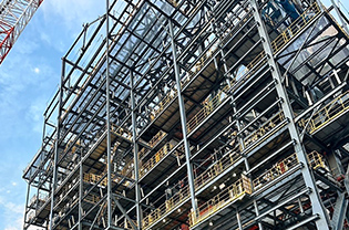 鉄骨を組上げ、建物の骨組みをつくる工事です。難易度が高い作業ですが、技術力と集中力を培えるようにサポートいたしますのでご安心ください。